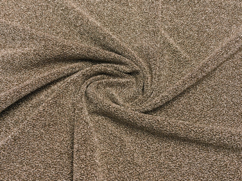 Elastický úplet s lurexem je elegantní a výrazná látka, která v sobě spojuje pohodlí pružného úpletu a luxusní třpytivý efekt. Jemně lesklá lurexová vlákna vytváří sofistikovaný shimmer, díky kterému látka působí slavnostně a výjimečně. Materiál je příjemně elastický, krásně se přizpůsobí postavě a zvýrazní siluetu, takže perfektně vynikne na přiléhavých střizích, které potřebují volnost pohybu i modelech s řasením, drapériemi nebo hlubším výstřihem.