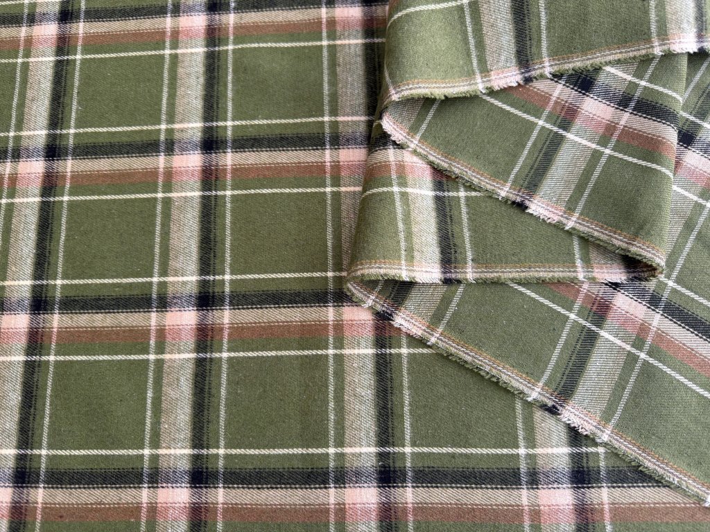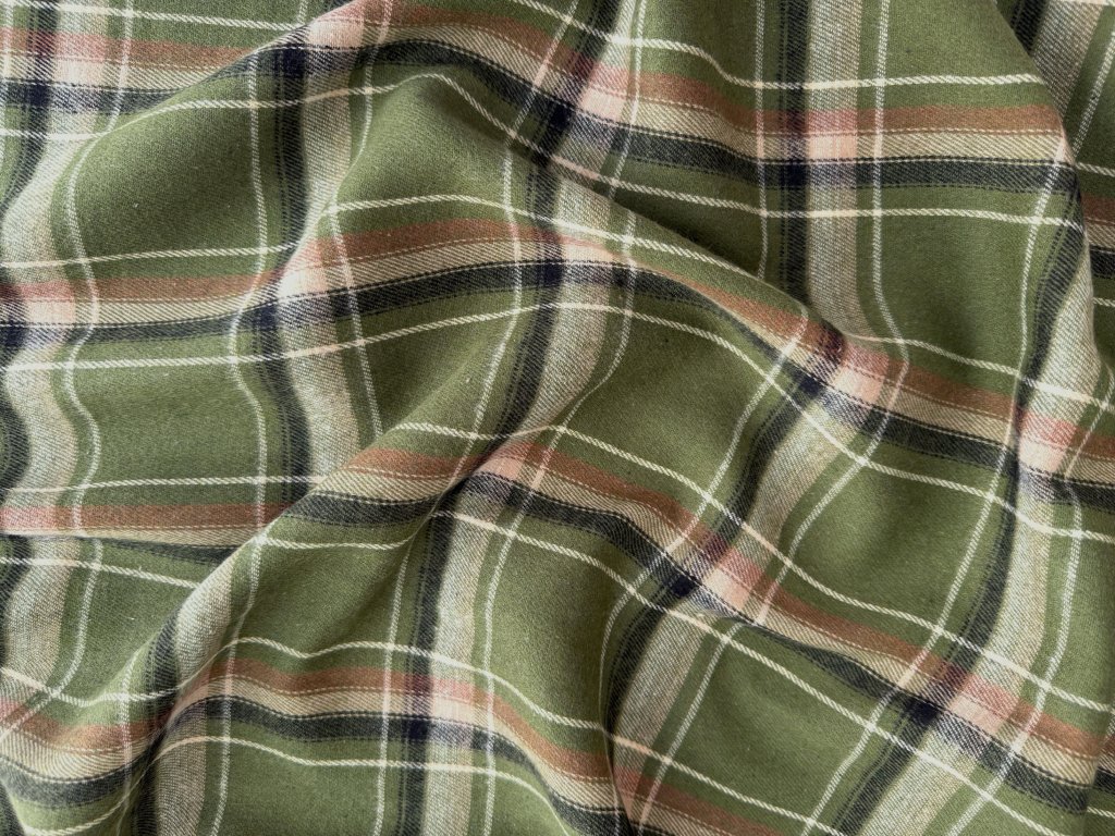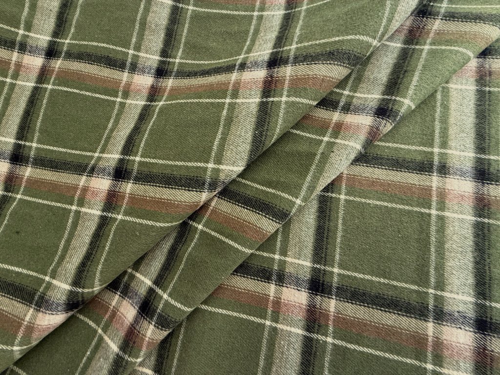 Flanel s kostkovaným vzorem – olivově zelený, hnědý a černý