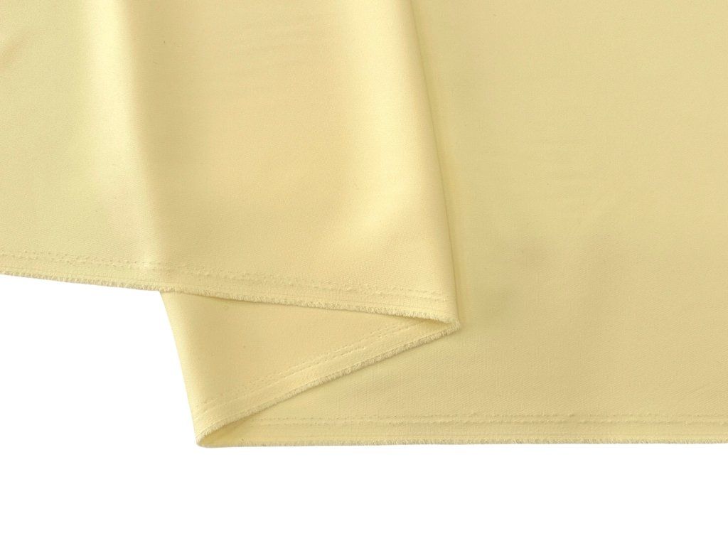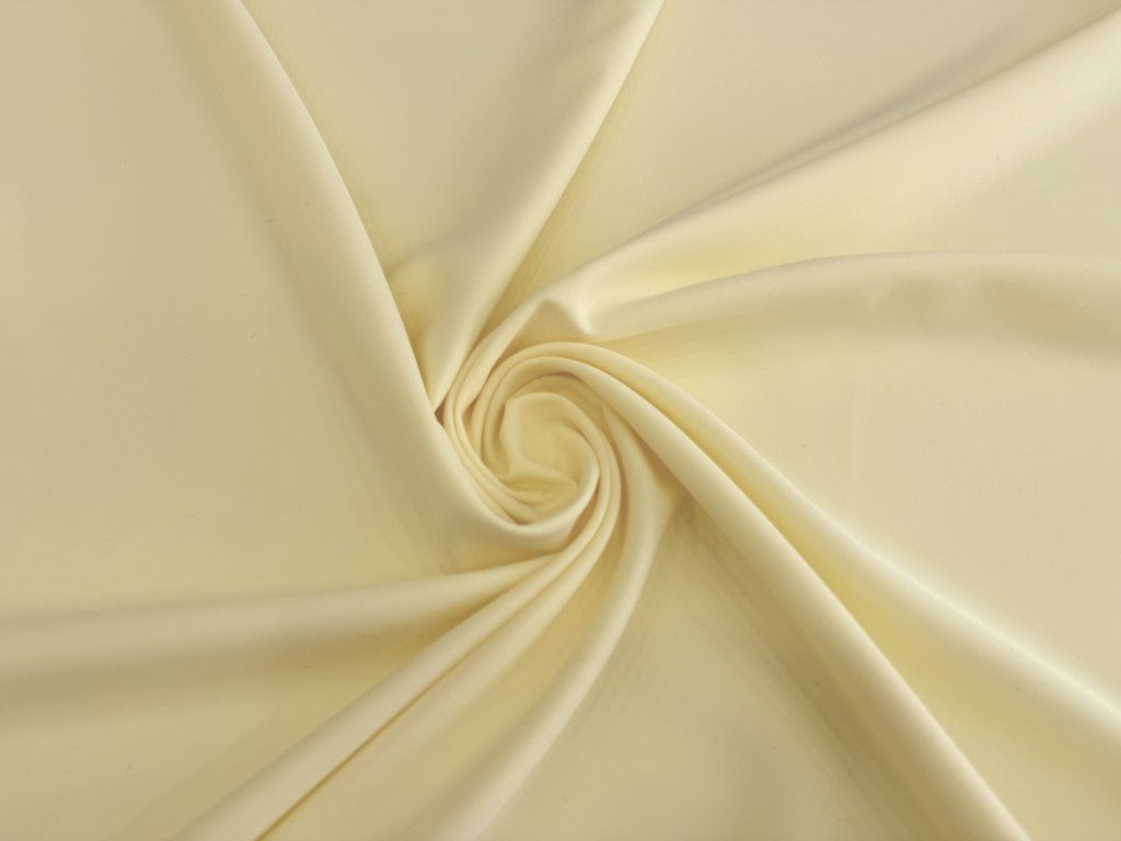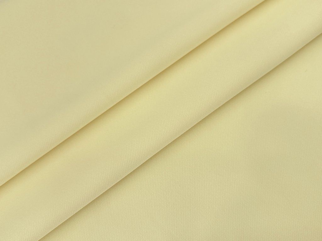 Kvalitní krepová šatovka v moderním bledě žlutém odstínu, který krásně doplní elegantní i každodenní modely. Látka má jemnou krepovou strukturu, matný vzhled a díky příměsi elastanu je lehce pružná, takže se dobře přizpůsobí postavě.