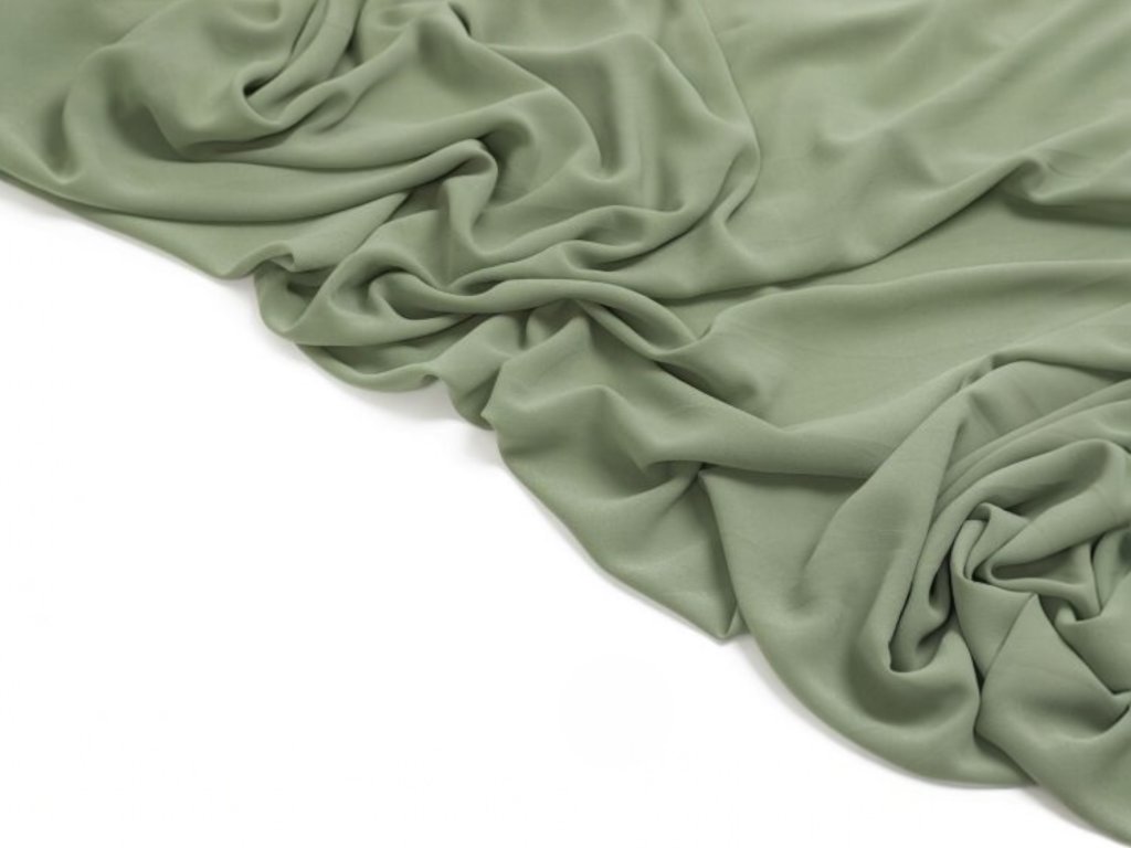 Jemná, poloprůhledná a lehká látka s matnou krepovou strukturou v nadčasovém odstínu sage green (šalvějová zelená). Materiál je velmi příjemný na dotek, vzdušný a krásně splývavý, což z něj dělá ideální volbu pro šití šatů, blůz, sukní nebo lehkých elegantních outfitů.