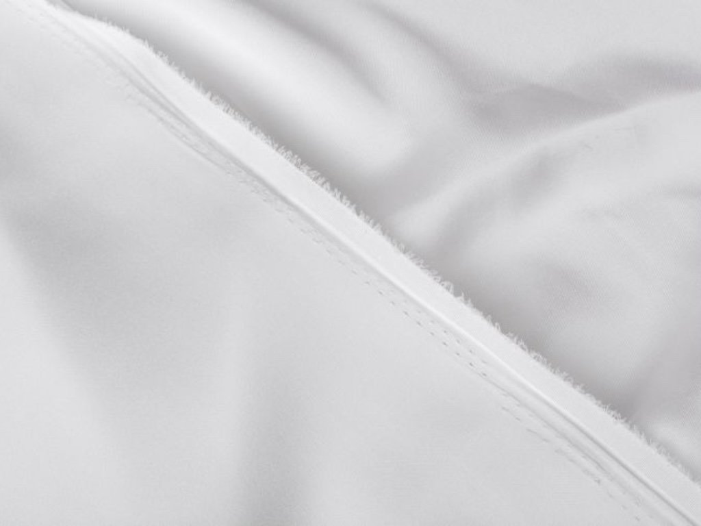 Satén oboustranný bílé barvy je splývavým, příjemným materiálem a polo matným hedvábným vzhledem. Satén je velmi hladký, lehce elastický a neprůhledný, téměř neprosvítá – což umožňuje použití bez podšívky. Materiál má střední gramáž s hustou vazbou, a tím se tato nádherná saténová látka se hodí k šití elegantních modelů, například společenských a večerních šatů, sukní, kalhot, kostýmů a halenek.