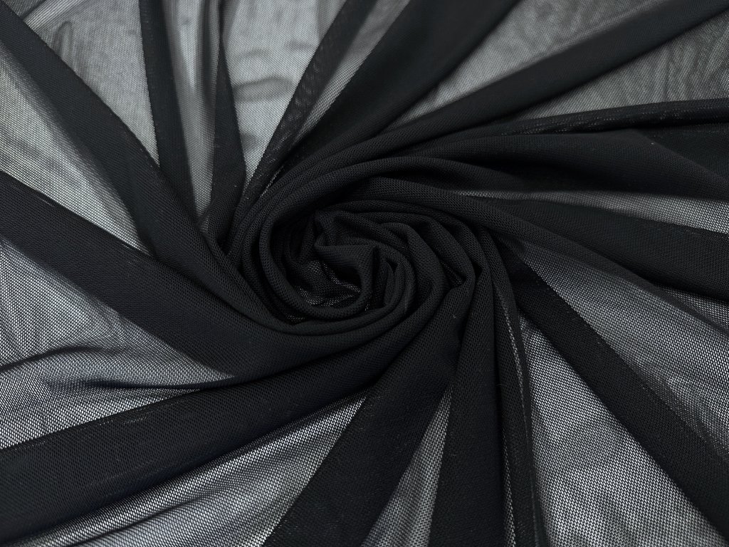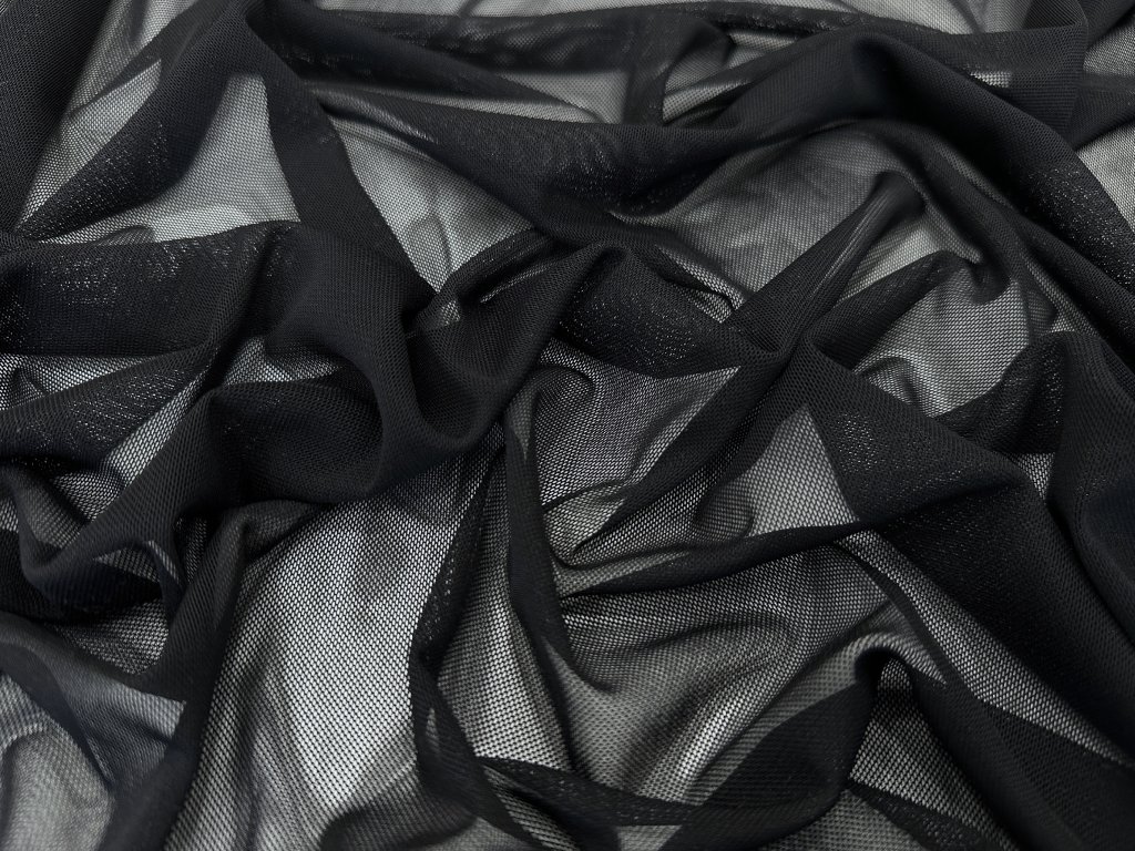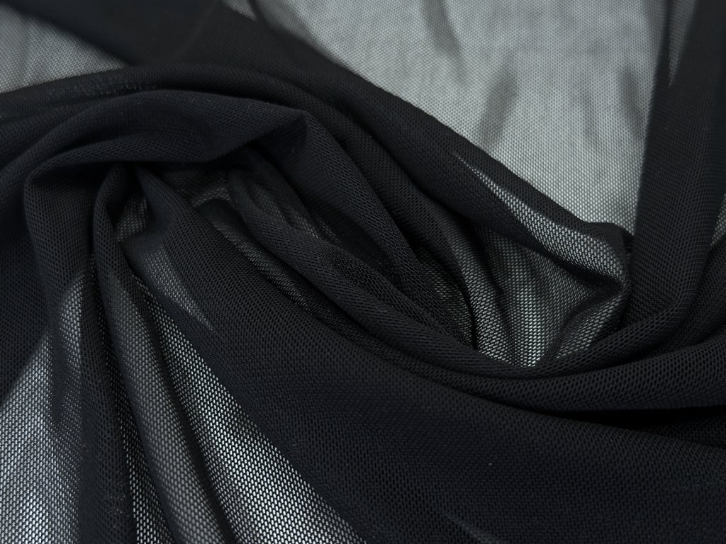 Úpletový pružný tyl v černé barvě, ideální pro výrobu tanečních a gymnastických kostýmů. Materiál je velmi pružný a elastický ve všech směrech, což zajišťuje maximální volnost pohybu a pohodlí. Lehký a vzdušný, snadno se přizpůsobí tvaru těla, což ho činí vhodným také pro šití spodního prádla nebo jako podkladový materiál pro různé dekorativní prvky.