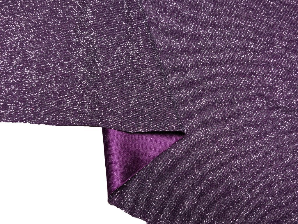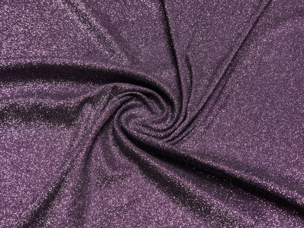 Společenský třpytivý úplet s lesklým povrchem, který na světle nádherně září a vytváří elegantní glamour efekt. Díky úpletové struktuře je látka příjemná na dotek, krásně splývá a při pohybu vytváří efektní světelné odlesky, díky tomu působí luxusně a dokonale připraveně na večerní události.