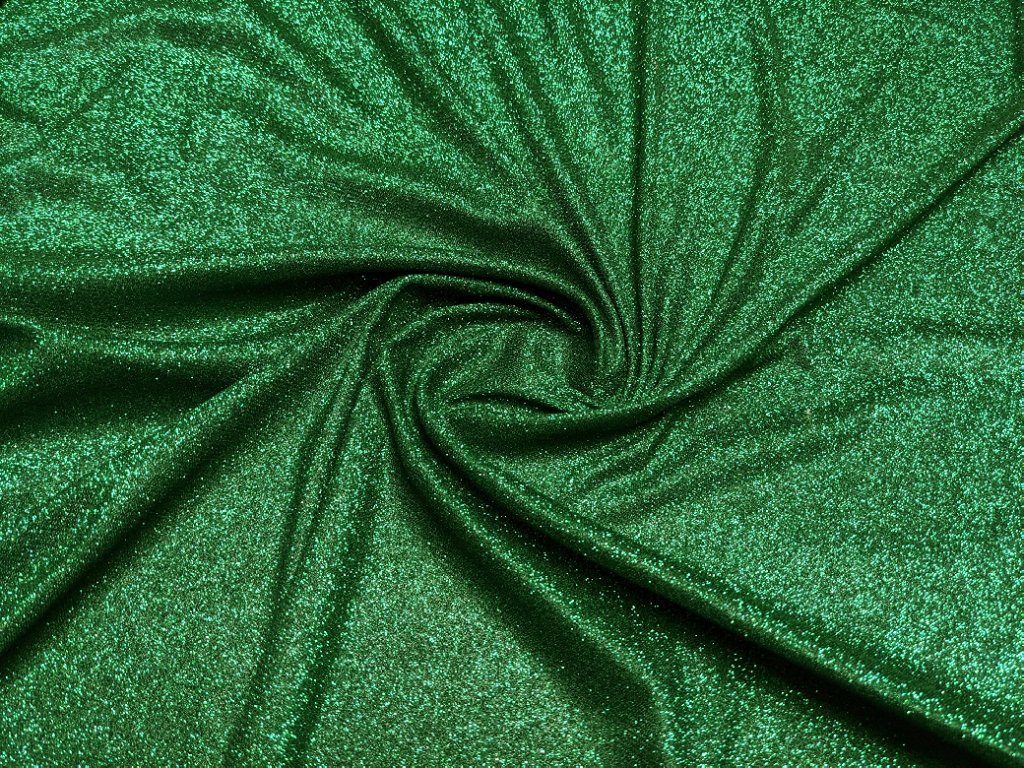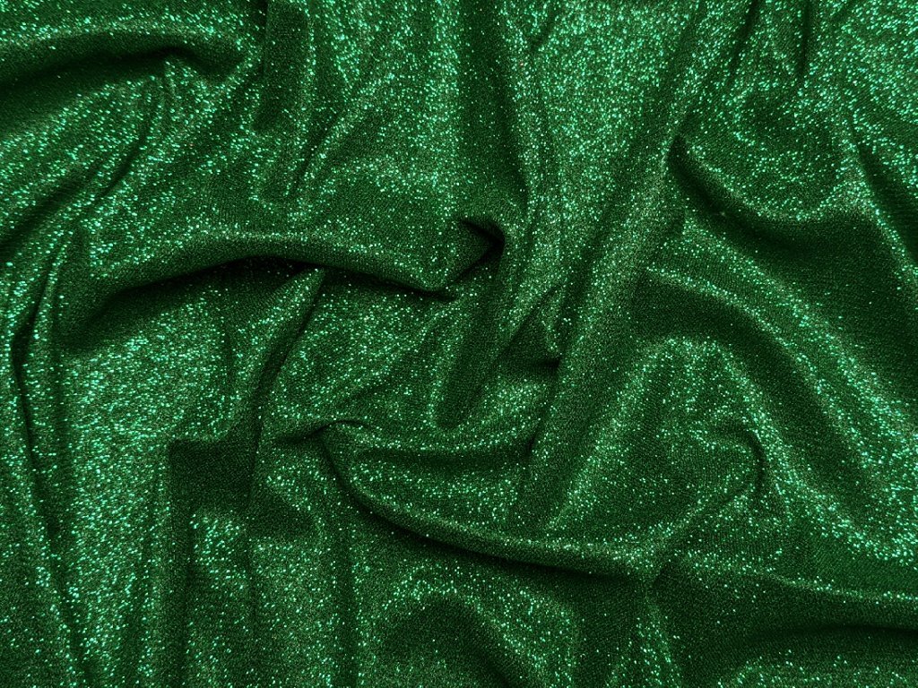 Společenský třpytivý úplet s lesklým povrchem, který na světle nádherně září a vytváří elegantní glamour efekt. Díky úpletové struktuře je látka příjemná na dotek, krásně splývá a při pohybu vytváří efektní světelné odlesky, díky tomu působí luxusně a dokonale připraveně na večerní události.
