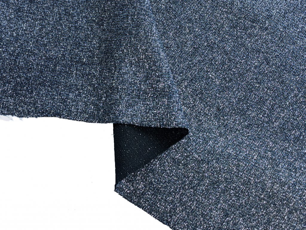 Třpytivý úplet je splývavá, neprůhledná a působivá látka. Hodí se na efektní triko, halenu, sukně nebo šaty na běžné nošení i do společnosti.