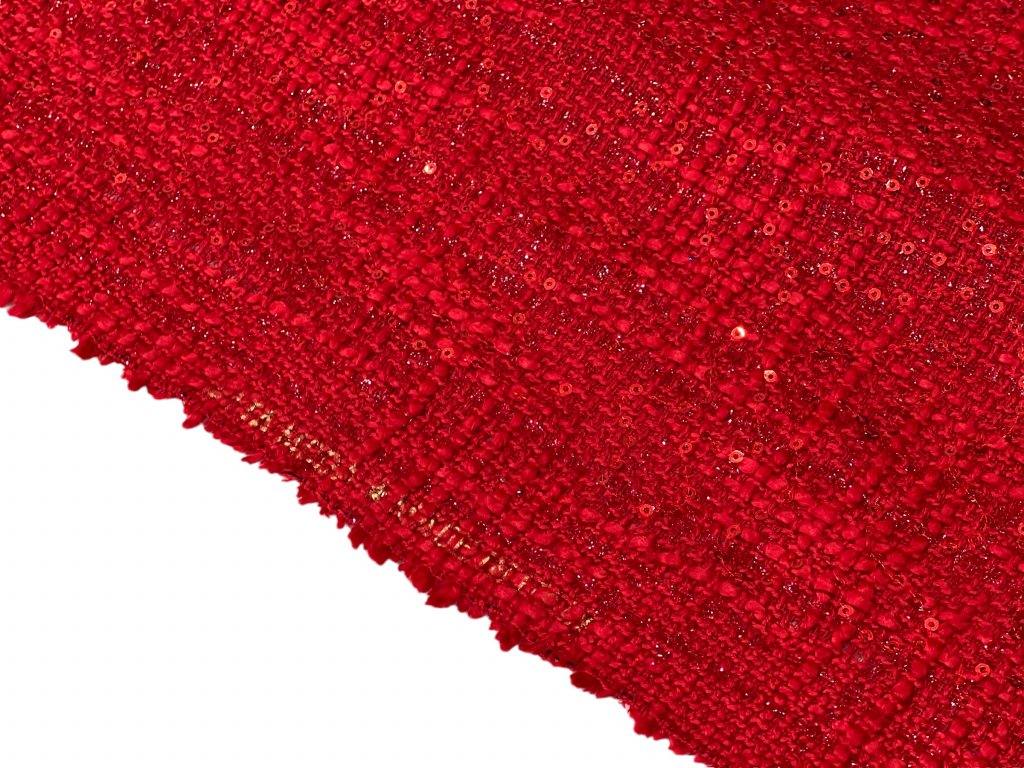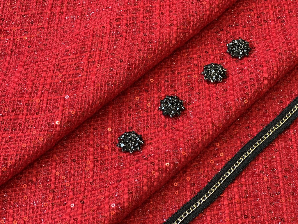 Italská látka typu chanel s charakteristickým vzhledem je střední gramáže. Tato nadčasová látka působí elegantně a noblesně, zároveň je příjemná na dotek a velmi pohodlná při nošení. Díky své pevnější, ale poddajné struktuře je ideální pro šití kostýmků, sak, kabátků, šatů, sukní i módních doplňků. Tvídová látka chanel se stala symbolem elegance a luxusu a je velmi ceněna módními nadšenci a znalci.