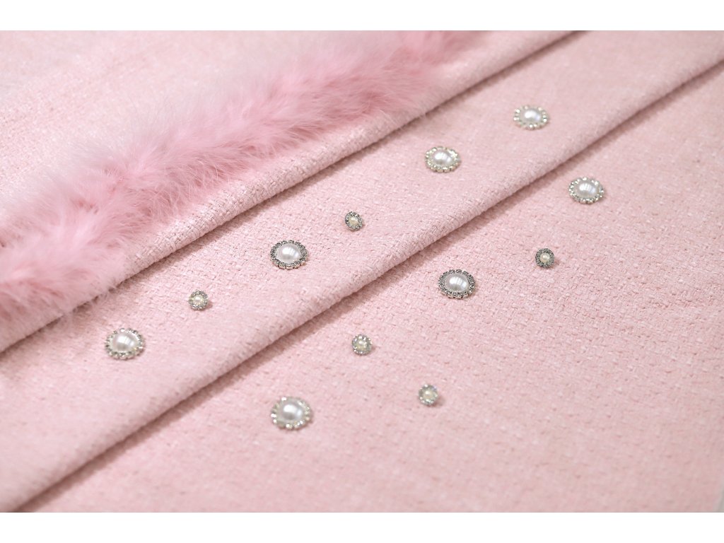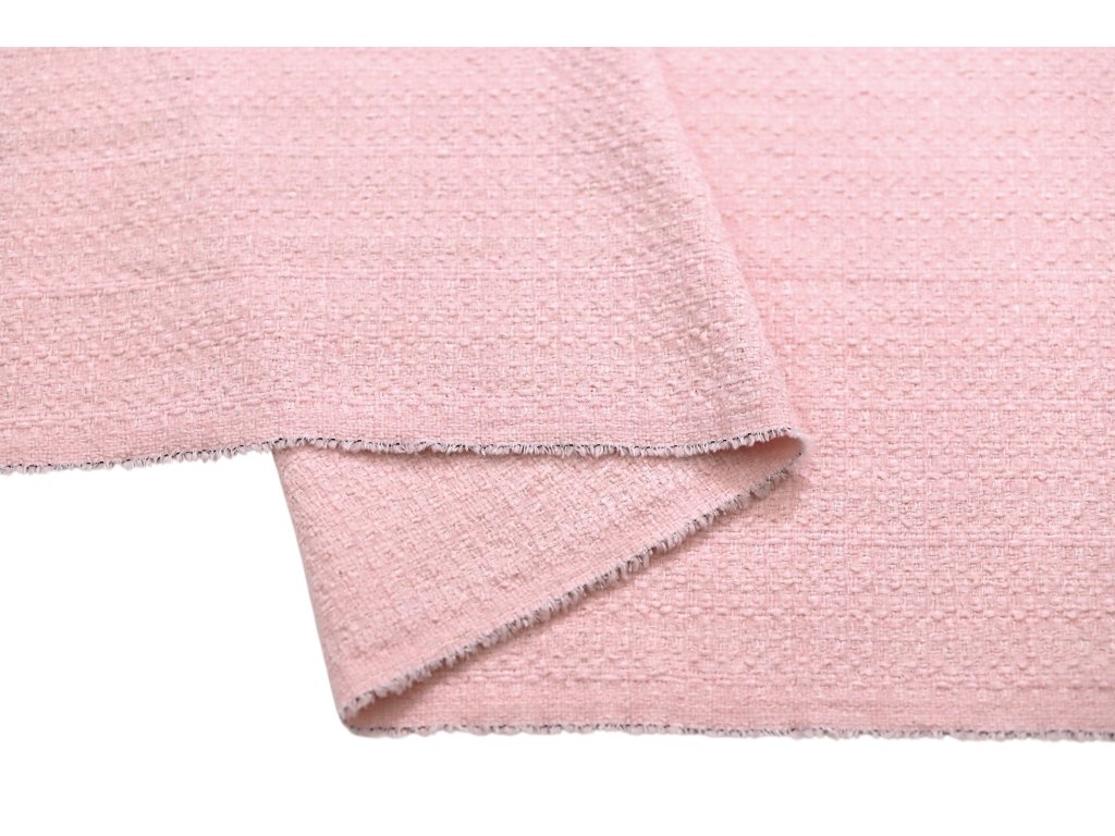 Baby pink tvíd s jemnou plastickou strukturou, inspirovaný nadčasovým stylem Chanel. Tato výrazná látka vnáší do šatníku svěžest, optimismus a francouzskou eleganci. Je pevnější, ale zároveň příjemně měkká a poddajná, což zaručuje pohodlné nošení i precizní zpracování při šití.