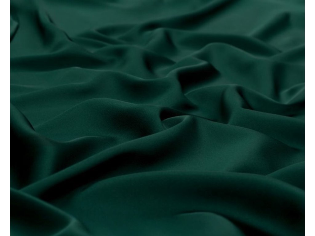 Umělé hedvábí ve smaragdovém odstínu je měkká, elegantní látka s hebkým, jemně lesklým povrchem a matným rubem. Přestože je látka z umělého materiálu, jedná se o kvalitní tkaninu s měkkým omakem. Jemný satén s hedvábným leskem je vhodný na šaty, sukně, halenky, apod. Jemný satén s hedvábným leskem je velmi jemná a pružná látka pružící do jednoho směru, na těle je jako peříčko, příjemná a chladivá.